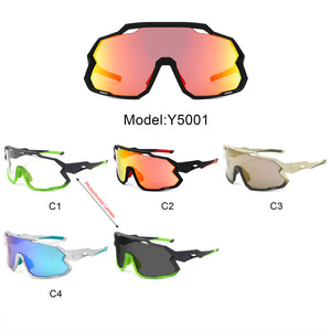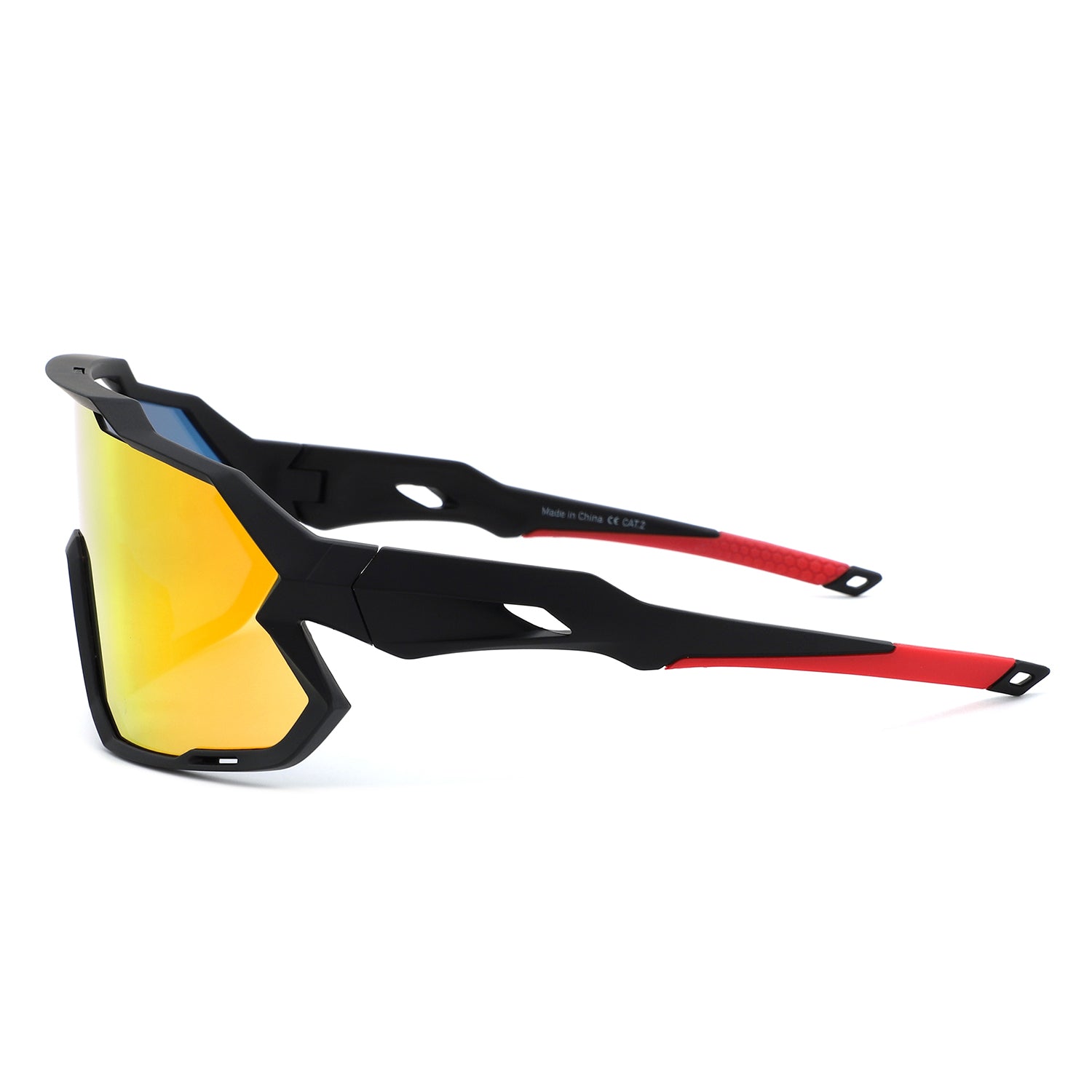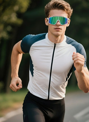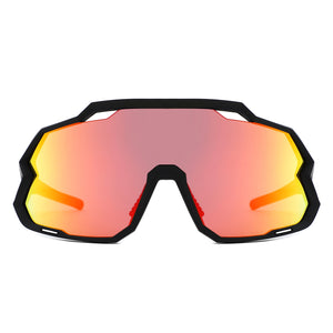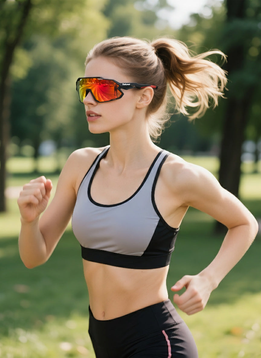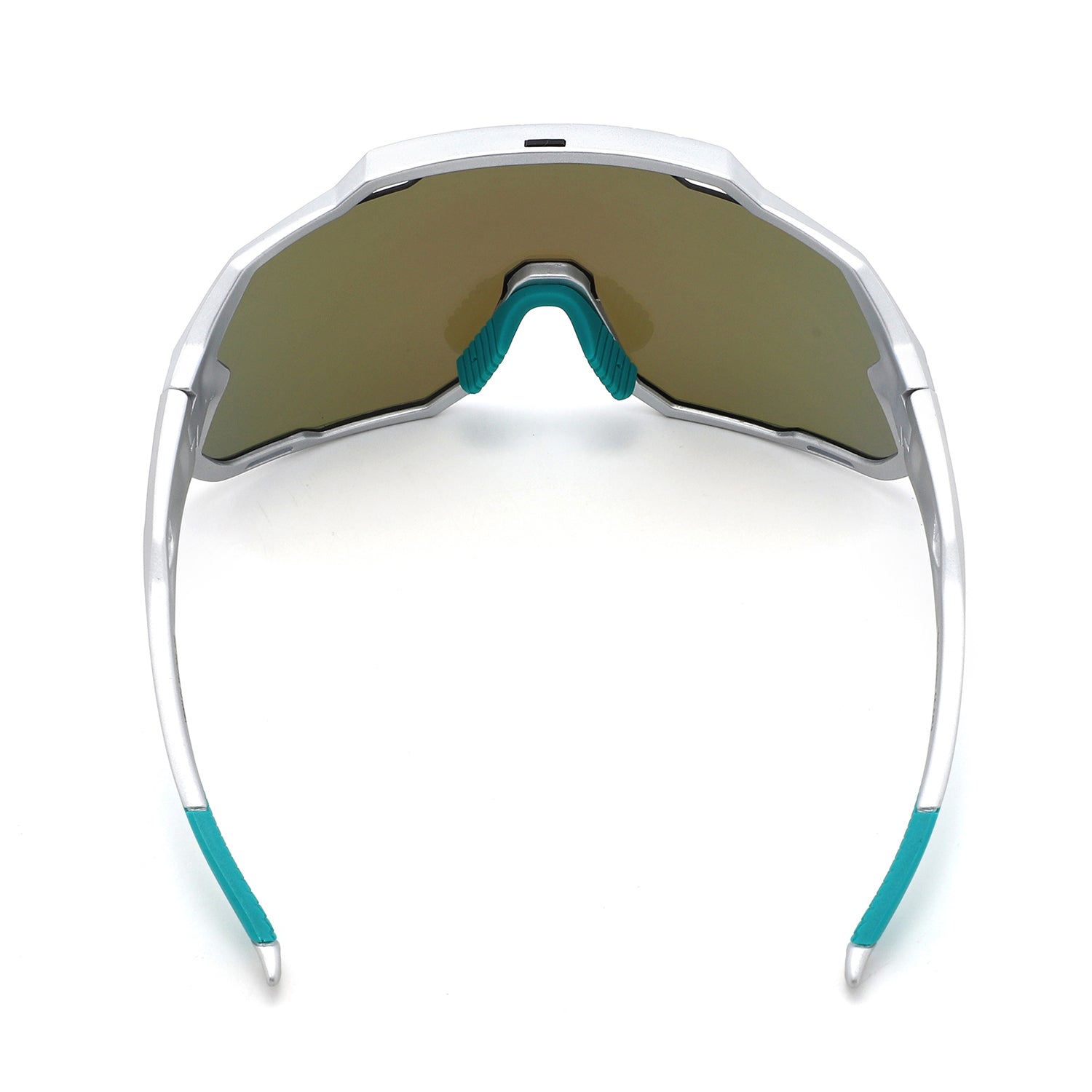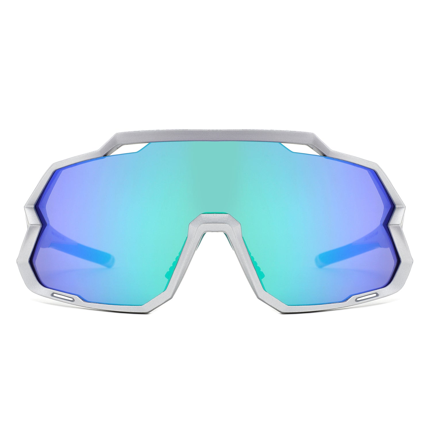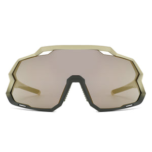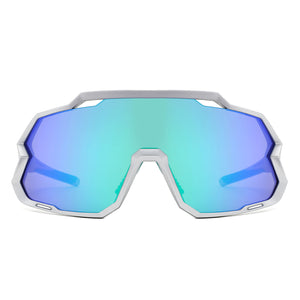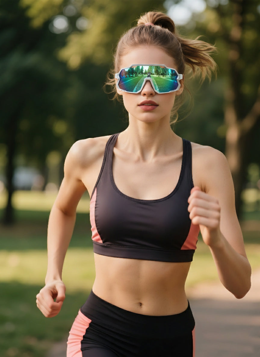 These high-performance sport sunglasses feature an aggressive shield design with wide coverage for maximum protection during cycling, running, and outdoor training. The lightweight frame and ventilated lens structure provide comfort and stability at high activity levels. A bold, modern look built for speed and endurance.