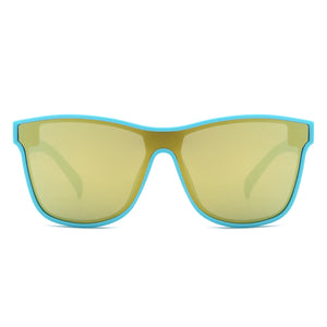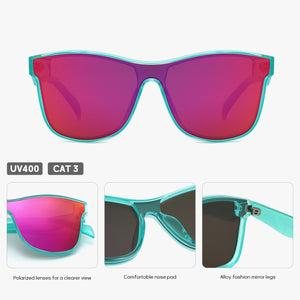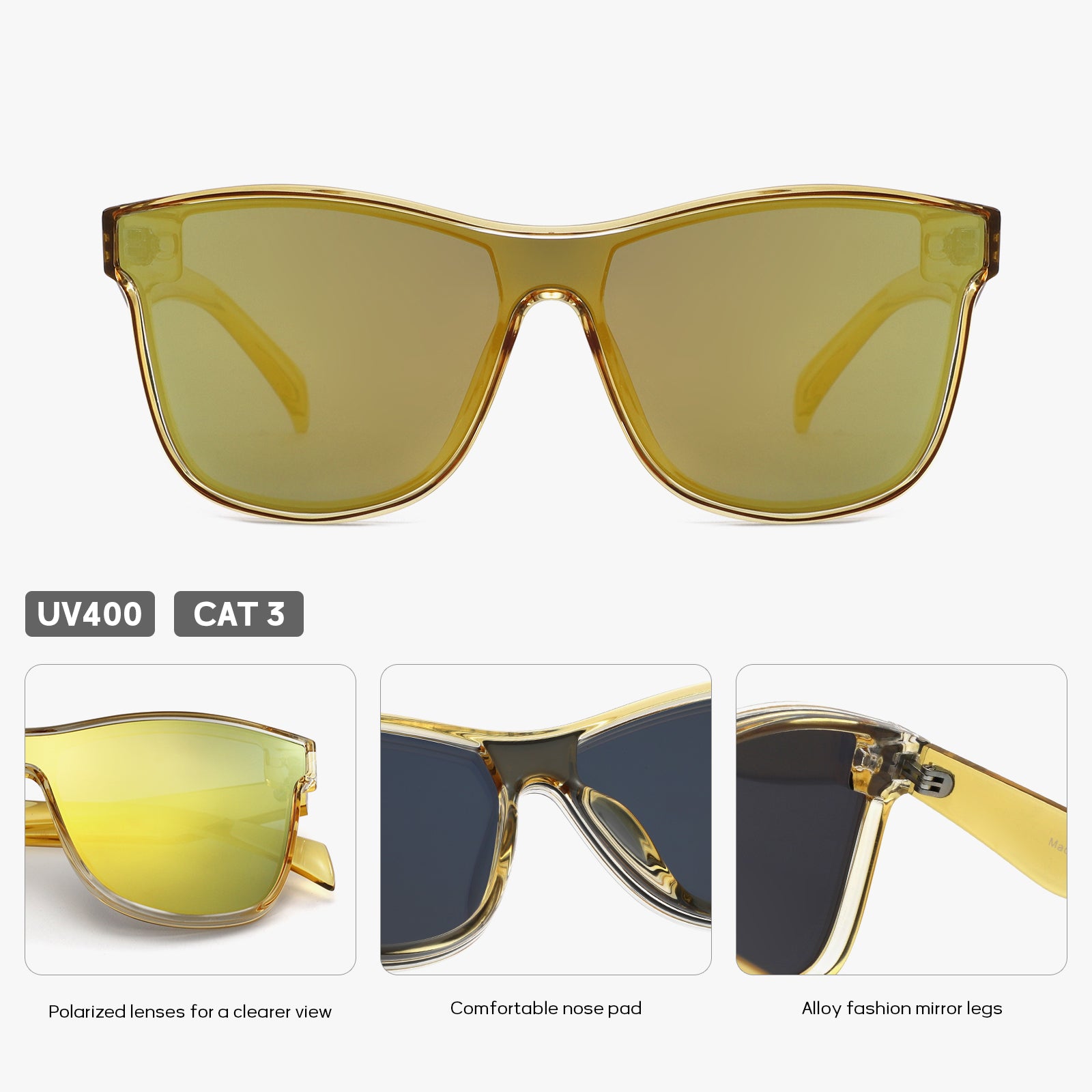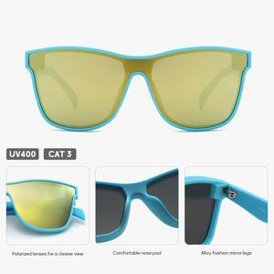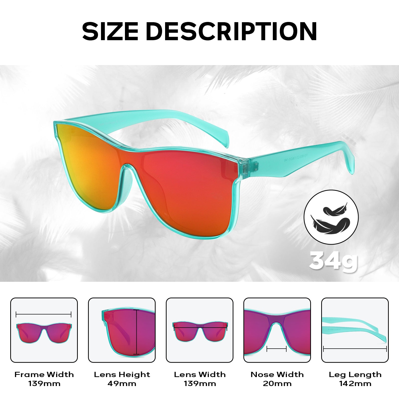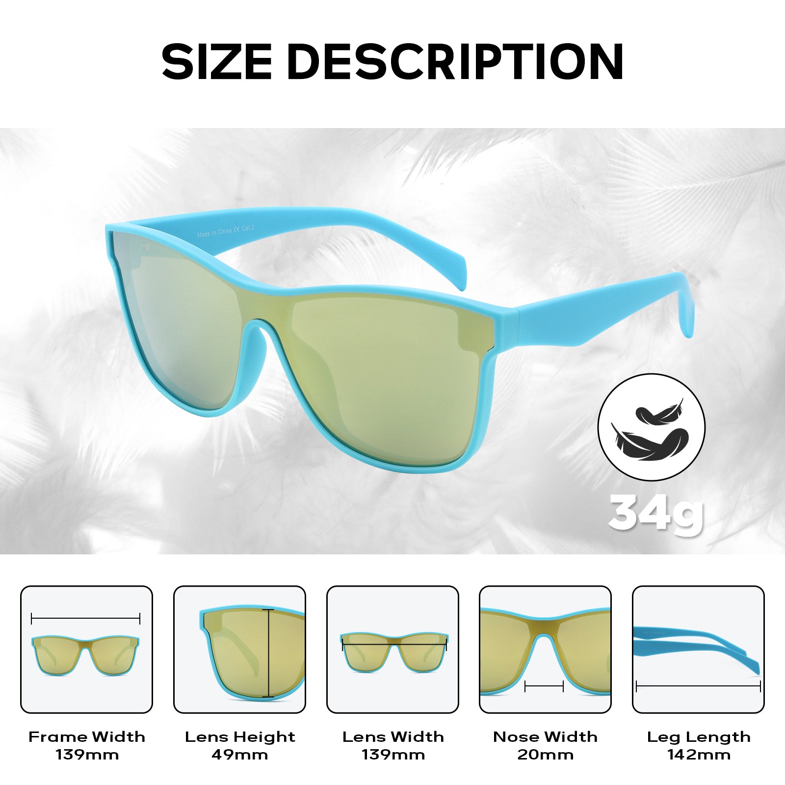 These sport-inspired sunglasses feature a bold one-piece lens look with vibrant mirrored finishes for a modern, energetic feel. Lightweight and comfortable, they offer a sleek wrap-style fit that stays secure during active use. A stylish blend of performance and attitude for everyday wear.