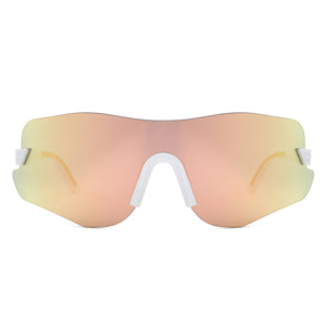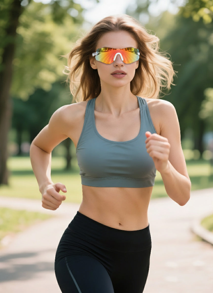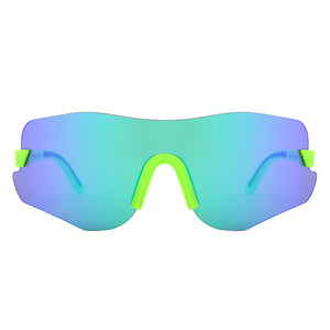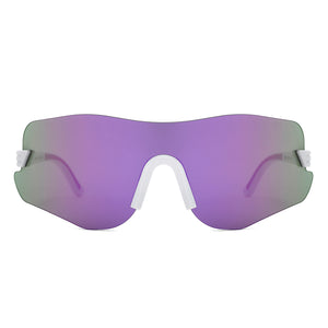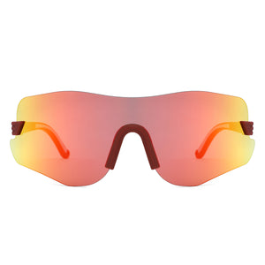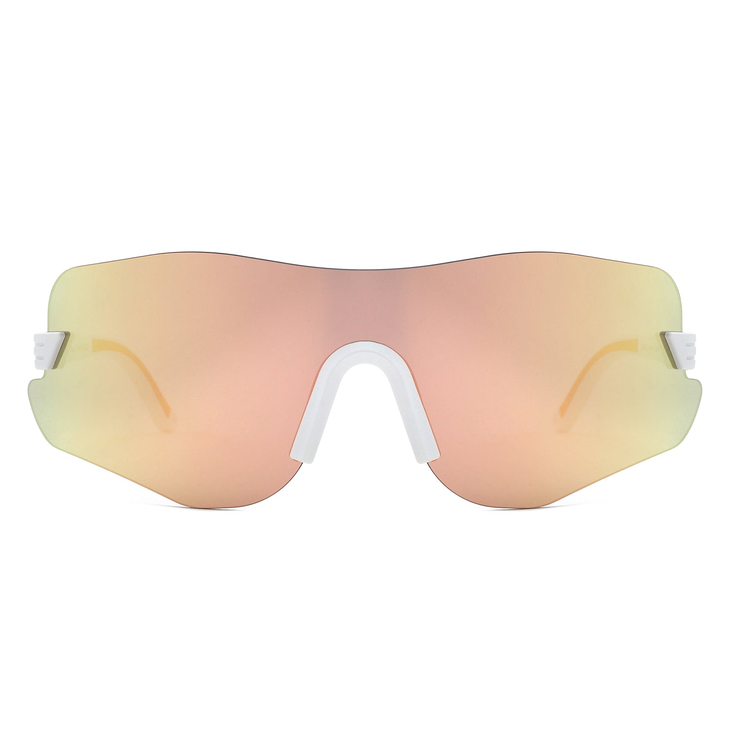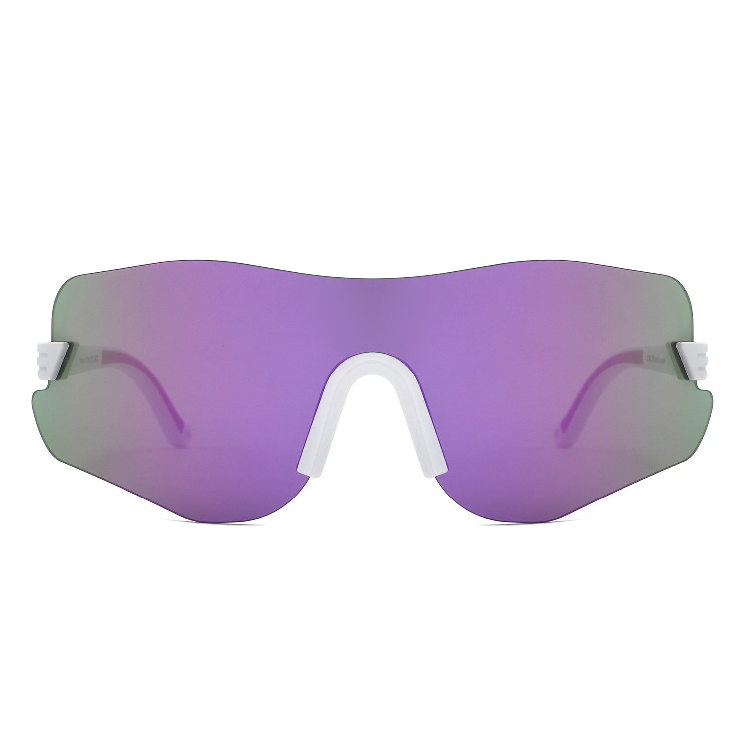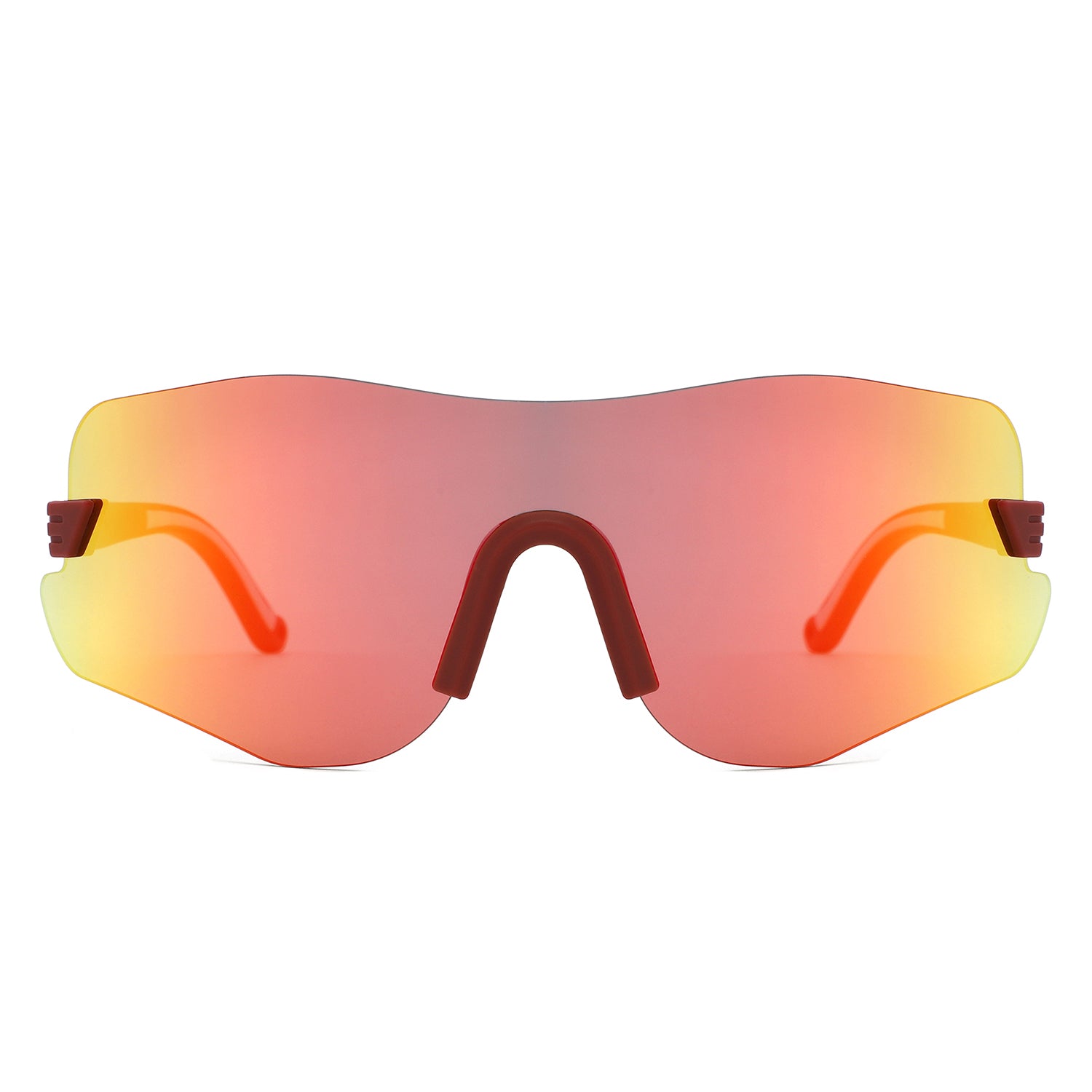 These ultra-light shield sunglasses feature a frameless one-piece lens for a sleek, aerodynamic look and unhindered field of vision. Designed for active performance, they provide a secure and comfortable fit during running, cycling, and outdoor training. A modern, minimalist sport style with bold mirrored finishes.